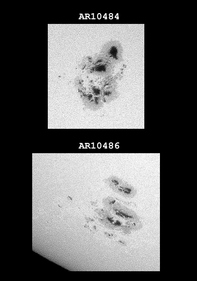Note: The sunspot groups AR10484 (Zurich class: Ekc, 05° N, 15° W) and AR10486 (Zurich class: