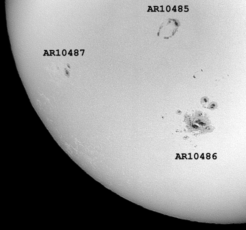 Similarly, for a full-disk image of today's sun by the author which includes AR10485 and AR10487 (Zurich class: