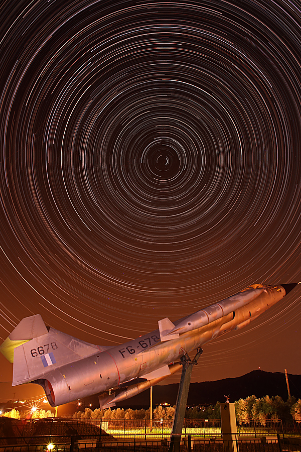 The F-104 Starfighter on display below at Athikia, Corinthia, Greece was erected in 2009 and is dedicated to the pilots of