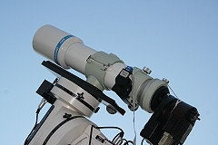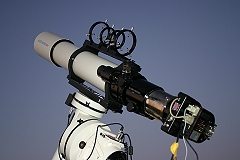 the need arises for a wider angle field of view, a Takahashi FSQ-106 quadruplet fluoride refractor is employed and which is piggybacked onto