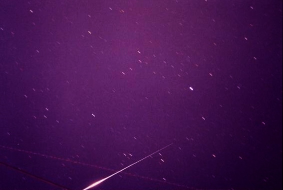 Some of the most intensive preparations are those involving the photography of Iridium flares, particularly when the satellite trajectory is low in the sky and few stars are available as a frame of reference due to sky glow and/or light pollution. Having studied and prepared everything very thoroughly - or so I thought - I set the camera and tripod up so as to have the flaring satellite record at the centre of the 35mm frame (typical procedure). However, when the satellite did flare, it was immediately obvious that something went grossly wrong. To make matters worse, this was a very rare and unique -8.5 magnitude flare. Two years later (and counting) and I am still waiting for a similar opportunity. For examples of properly centered Iridium flares, click here. | |