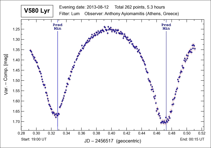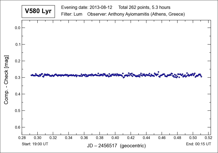 Note: The eclipsing binary star V580 Lyr is a quick eclipsing binary variable star with a period of