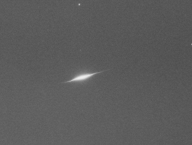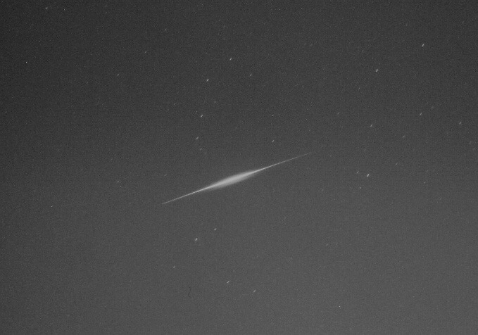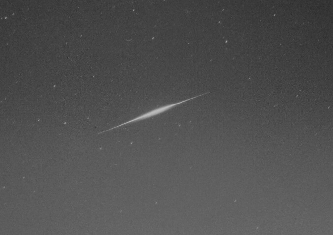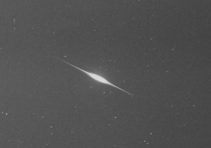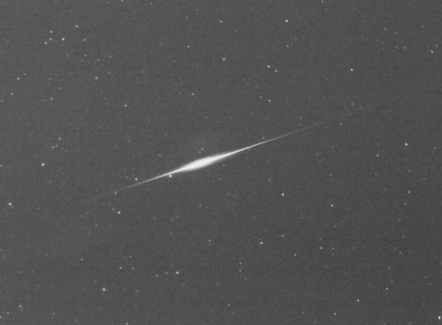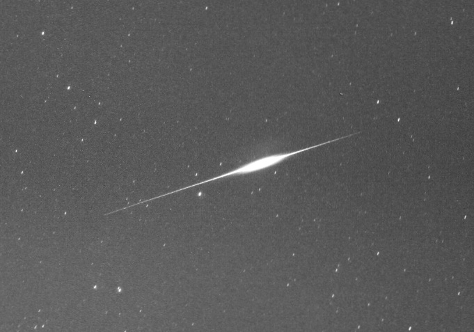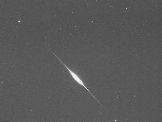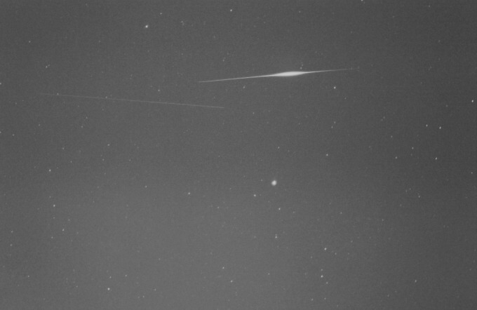 Note simultaneous pass by the Okean 0 rocket body to SW of flare. |